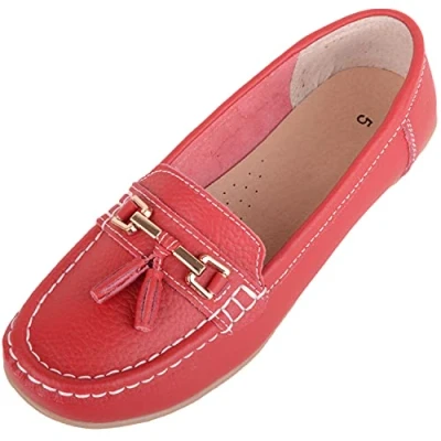 Sizes: UK 3 - 8 Real Leather Uppers. Padded Insole for ExtraComfort Hardwearing Ridged Rubber Sole for Grip and Comfort. Slip On Style Beautiful Bar and Tassel Trim on the Front