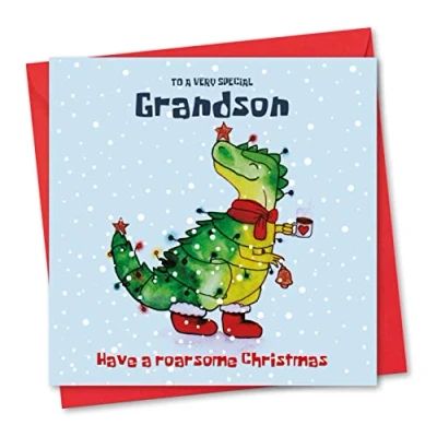 Absolutely Yours Christmas card for Grandson. TreeRex Design. Ecofriendly & UK Made. Blank Inside. 150x150mm size