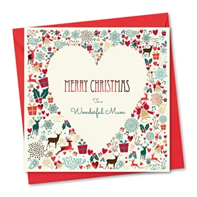 Absolutely Yours Christmas card for Mum. Heart Design with Red Foil. Ecofriendly & UK Made. Verse Inside. 150 x 150mm size