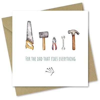 FATHERS DAY CARDS - 150x150mm when folded. Card supplied folded and individually wrapped with envelope. MADE IN THE UK – Designed, printed and packed in the UK, our cards are made from board which is manufactured in Europe. Cards have "Happy Father's Day" message on inside. POSTAGE - Card with envelope: Weight 22g. Size: 155x155x3mm (UK Postage - Letter) PREMIUM QUALITY THICK CARD – 365 Microns sturdy card with luxury feel. Supplied with premium quality Kraft envelopes. COMPOSTABLE BAG - Supplied in protective Biodegradable and Compostable clear bag. Made with minimum 80% renewable bio-based content.