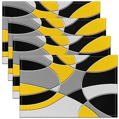 Abstract Art Table Place Mats 45X30cm Set of 4 Soft Black White Yellow Grey Geometric Placemat for Kitchen Dining Decoration Indoor Outdoor Modern Placemats