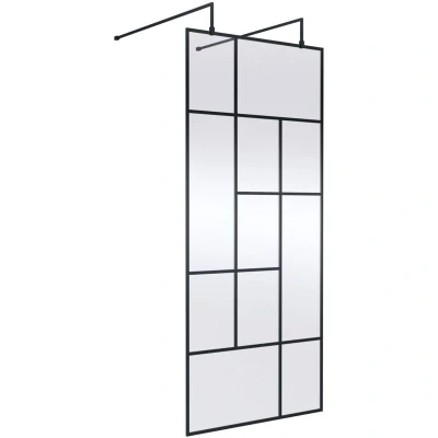 Features and Benefits: 8mm toughened safety glass Single-sided Shower Shield coated glass Includes matt black support bar and profile kit Supplied with the T piece for the support arms During installation extra care must be taken to avoid damaging the fittings Guarantee: 5 years against faulty workmanship or materials (1 year on serviceable and moving parts), please see manufacturer guarantee policy for more information Glass Style Clear Glass Thickness 8mm Wet Room Glass Type Freestanding Glass Height 1950mm Glass Width 900mm Glass Support Wall Brace Shape Straight Adjustment Range 875 - 893mm Material Glass Profile Material Aluminium Brand Hudson Reed Collection Abstract Style Modern Market Domestic EAN Barcode 5056462644318 Weight 40.3 Kg Manufacturer Part Number(s) BFAFB090