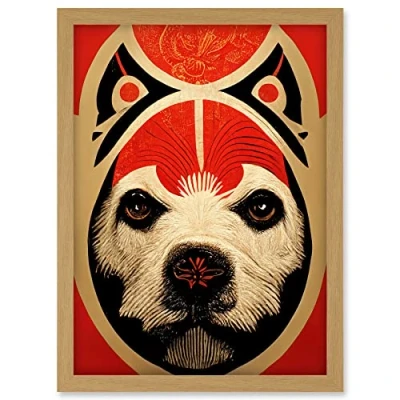Abstract Mixed Media Dog Design Red Black Artwork Framed A3 Wall Art Print