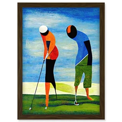Abstract Surreal Modern Golf Golfing Couple Playing Artwork Framed Wall Art Print A4