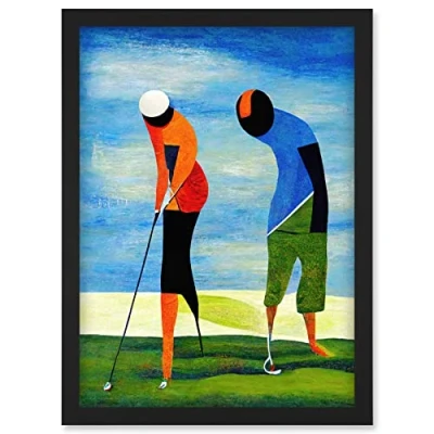 Abstract Surreal Modern Golf Golfing Couple Playing Artwork Framed Wall Art Print A4