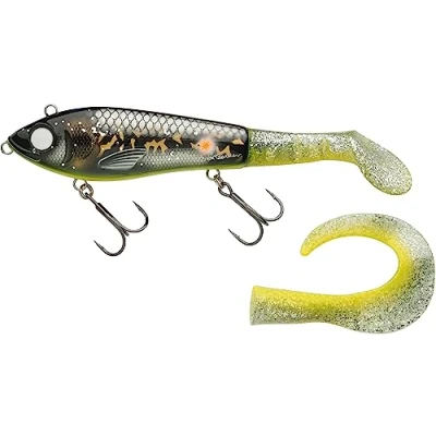 INNOVATIVE HYBRID DESIGN: The McHybrid combines the durability and casting distance of hard lures with the lifelike action of soft baits, featuring a hard body paired with a soft paddle tail. REALISTIC BAITFISH PROFILE: Designed with a wide and oval body, the McHybrid closely resembles natural prey, providing an authentic baitfish appearance that effectively entices predatory fish. DUAL TAIL OPTIONS FOR VERSATILITY: Supplied with both a paddle tail and a curl tail, allowing anglers to adjust the lure’s swimming action based on water conditions and fishing techniques. DURABLE CONSTRUCTION: Crafted from impact-resistant ABS plastic and weighted with eco-friendly zinc, the McHybrid is built to withstand the rigors of predator fishing. ENHANCED STRENGTH: Incorporates stainless steel wire-through construction and oversized stainless steel tail screws for added durability and strength, ensuring reliable performance during aggressive strikes.