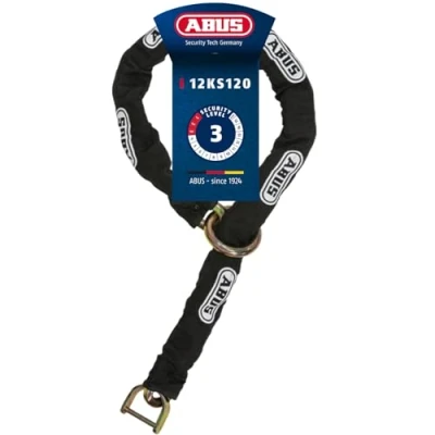 ADDITIONAL CHAIN: the ABUS Granit Detecto XPlus 8008 brake disc lock can be supplemented with the 12KS motorbike chain - so the motorbike is doubly secured APPLICATION: The chain is used to attach the lock to a fixed object - this complements the immobiliser MATERIAL: Motorbike lock made from specially hardened steel PRODUCT DETAILS: Chain with textile coating to protect against paint damage - Length 120 cm - Chain thickness 12 mm - Weight 4.1 kg NOTE: can only be used in conjunction with the ABUS Granit Detecto XPlus 8008 brake disc lock