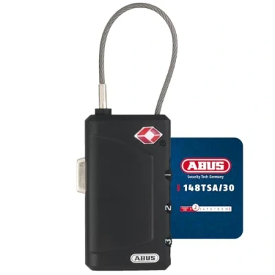 TSA standard: A piece of luggage fitted with a Travel Sentry Approved lock can be opened, checked and relocked by the security authorities without being damaged Simple operation: with 3-digit, customisable numerical code - no key required - open the cable bracket by pressing the lever on the side Indicator included: Visible red ring means cable lock has been opened using a TSA key High-quality combination lock: ABUS security level 2 - Weight 23 g - Width 30 mm, height 96 mm, depth 12.5 mm, shackle diameter 2 mm, clear shackle height 40 mm, clear shackle width 17 mm Writable name plate for the case lock is included in the scope of delivery, Weight: 0.09 Pounds, Manufacturer: ABUS