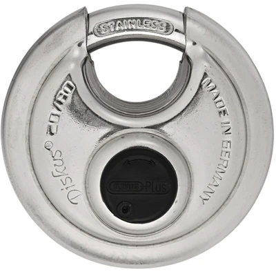 General description This ABUS Diskus® Plus padlock offers high security with a robust stainless steel body and shackle. It is designed to resist cutting, drilling, and manipulation attacks, making it suitable for securing valuable items and high-risk areas. Ideal for securing valuables, warehouses, factory gates, containers, and vehicles, it provides 360° protection against sawing and impact. Technical specifications ABUS Security Level: 9 Body Width: 80mm Overall Height: 81mm Overall Depth: 35mm Shackle Width: 25mm Shackle Height: 18mm Shackle Diameter: 11mm Number of Key Differs: 30,000 Compatibility and accessories Compatible with ABUS-Plus key systems Supplied with 2 keys and a key code card Installation Designed for easy locking and unlocking with a key Re-keying possible to match other ABUS locks Usage Ideal for securing valuables, warehouses, factory gates, containers, and vehicles Suitable for high-security requirements in severe weather conditions Other information Made in