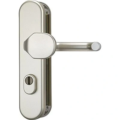 Stable door security fitting with cylinder protection for residential entrance doors Handle plate outside, handle (jack) inside High leverage resistance due to steel inset in inner shield Distance: 72mm, 8mm square spindle Silver colour, Weight: 3.42377892886 pounds, Manufacturer: ABUS