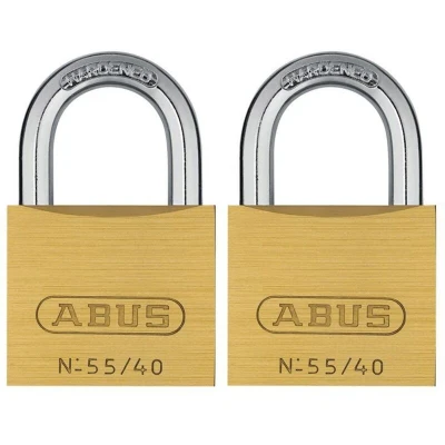 General description This twin pack of ABUS 55/40mm Brass Padlocks offers reliable security with durable construction. Designed with non-corrosive internal components, these padlocks feature a pin tumbler cylinder with anti-pick mushroom pins to resist picking attempts. The hardened steel shackle provides resistance against hacksaw attacks, and the locks are double bolted for increased shackle strength. Suitable for various applications, they ensure durability and security in outdoor and indoor environments. Technical specifications Security Level: 4 Body Width: 40mm Overall Width: 38mm Overall Height: 60mm Overall Depth: 13mm Shackle Diameter: 6.5mm Shackle Height: 22mm Shackle Width: 21mm Key Type: Keyed Compatibility and accessories Compatible with standard keys for padlocks of similar size and security level Long shackle (HB) version available for increased clearance Installation Insert the key and turn to open or lock the padlock Ensure the shackle is properly engaged in the hasp