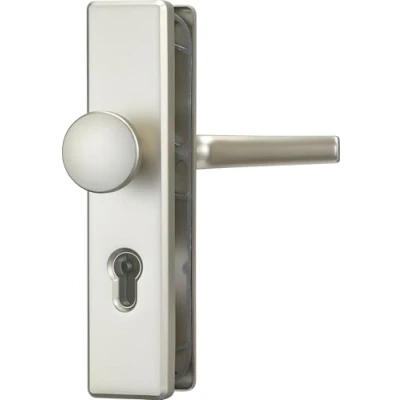 Standard door protection fitting for external housing doors Handle plate outside, handle (jack) inside Increased leverage resistance from stable cams and interior fittings Distance: 72 mm, 8 mm square spindle Colour: new silver, Weight: 2.18698563904 pounds, Manufacturer: Abus