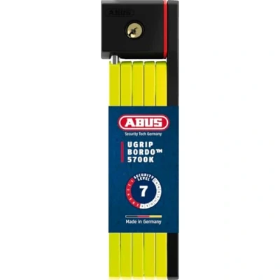 ABUS security level 7: The fashionable folding lock with 5 mm thick bars and high-quality automatic cylinder offers protection for low to medium theft risks Customisable: This model is available in numerous colour variants and can therefore be visually adapted to the helmet or bike, for example Foldable and compact: The special rivets allow the lock to be flexibly folded into a handy size, making it easy and space-saving to transport Reliable lock for bicycles: Bordo uGrip 5700K/80 - length 80 cm, weight 830 g, colour light green, ABUS security level 7, incl. 2 keys Incl. SH 5700 bracket: tool-free installation thanks to practical tensioning straps - lock can be removed from the bracket from the front