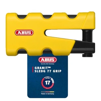 ABUS Brake disc lock Granit Sledg 77 grip Yellow Motorcycle with secure XPlus cylinder and reminder cable security level 17