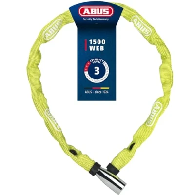 Bicycle lock with ABUS security level 3: The extra-light chain lock offers good protection thanks to its 4 mm thick steel chain and can be used quickly and flexibly Steel chain for good resistance: The robust chain is encased in a textile tube to protect against damage to the paintwork Uncomplicated locking and unlocking: Ideal for anyone who needs to lock their bike in different places for short periods of time in everyday life - also ideal for securing bike bags or helmets Bicycle lock for inexpensive bicycles: 1500/60 Web - length 60 cm, weight 230 g, colour yellow/green, 2 keys included Practical handling: Lock the lock with a click - even without the key inserted