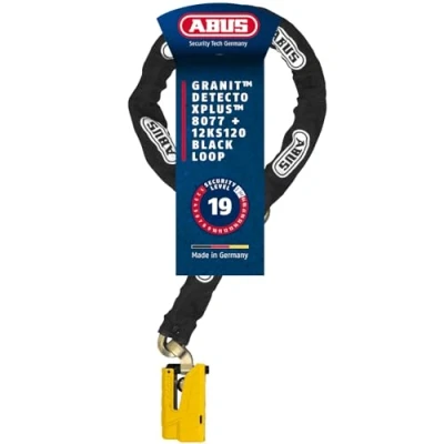 ABUS lock and chain combination GRANIT™ Detecto XPlus 8077 brake disc with alarm + 12 mm thick 12KS Black Loop security level 19