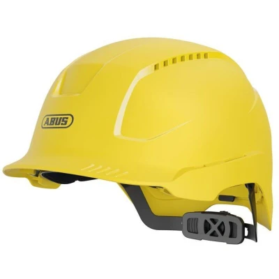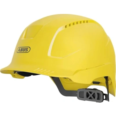 General description The ABUS SCATOR Vented Safety Helmet offers reliable head protection and a high level of comfort, making it ideal for use on construction sites, in industry, or in gardening and landscaping. Its lightweight and air-permeable outer shell ensures comfort during extended wear. Technical specifications Standard: EN 397:2012 + A1:2012 Head Size: 53-63 cm Weight: 380 g Compatibility and accessories Fitted with a headlamp holder Slots for visors and face protection 30mm Euroslot for ear protection Compatible with various accessories depending on the area of application Installation Equipped with a 6-point textile suspension harness for a perfect fit Adjustment wheel for individual size adjustment Three different height adjustment steps to suit various head sizes Angled neck strap to prevent wobbling and slipping Usage The helmet is designed to provide head protection against impacts and falling objects, making it suitable for various work environments.