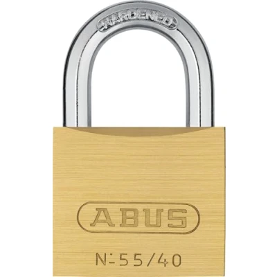 ABUS padlock brass 55/40 robust, weatherproof lock with automatic locking and hardened steel shackle suitable for loop cables, doors, gates, cabinets more 40 mm wide