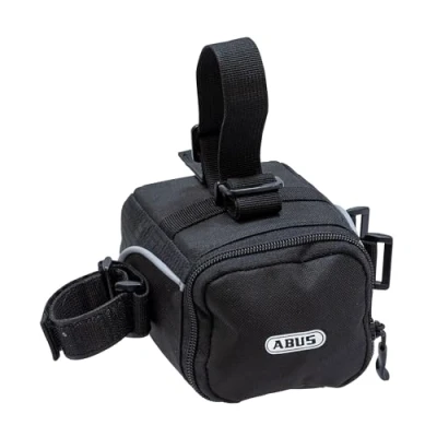 ABUS saddlebag ST 5050 -Flexible bicycle saddle bag made of water-repellent material - opening laterally to the left or right - with Velcro fastening Easy attachment: the Velcro strap can be attached by tabs on the front and back Lateral opening: Depending on the attachment, the saddlebag can be opened to the left or to the right Convenient handling: even if the luggage carrier is full, you can reach the contents of the saddle bag through the side opening Enough space: a 130 cm long plug-in chain, for example, fits easily into the compact bicycle saddle bag