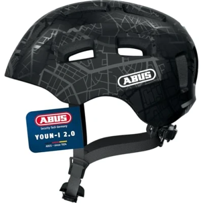 ABUS Youn I 2.0 bike helmet with light for children, teenagers and young adults girls boys black, size M