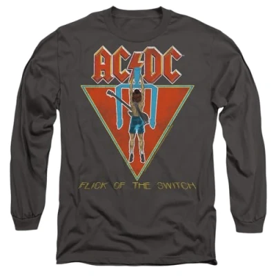 AC/DC Flick of The Switch Mens Long Sleeve T Shirt, Charcoal, M