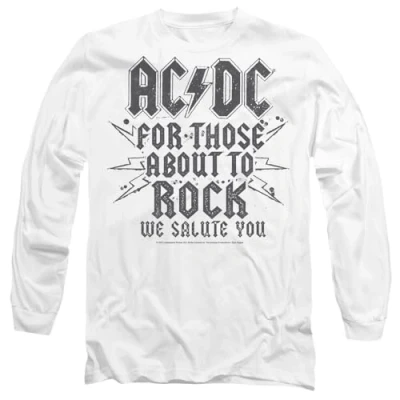 AC/DC Salute Mens Long Sleeve T Shirt, White, XXL