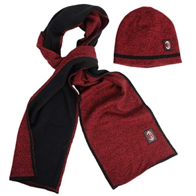 Ac Milan T.Unita, Hat and Scarf Set Melange Adult Size No Gender, Black, XL
