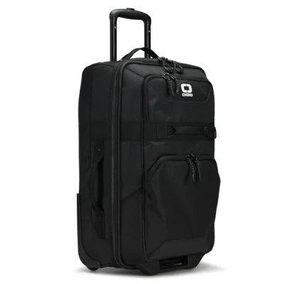 Spacious two-wheeled carry-on (domestic airline compliant) Large main interior with adjustable padded divider system Internal compression straps to maximize space Internal zippered compartment with removable divider Two large exterior pockets for quick access storage