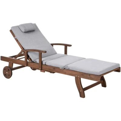 Acacia Wood Garden Sun Lounger Reclining with Wheels Classic Design Grey Melange Cushion Amantea Premium