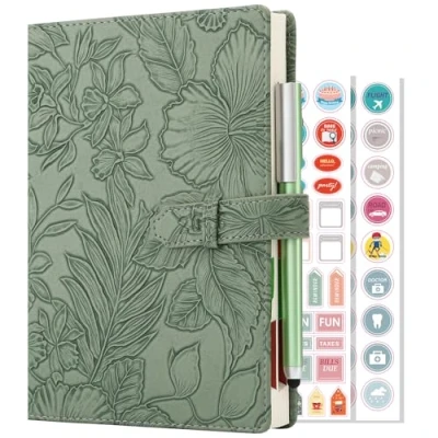 Academic Diary 2026,A5 Page a Day 2026, Per Planner Jan 2026 Dec 2026,Hardcover Daily with Monthly View, Pen,Colorful Tabs, Inner Pocket,Stickers (Green)