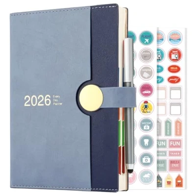 2026 DAIRY A5 Day Per Page: Academic diary 2026 runs from January 2026 to December 2026,12 Months diary 2026 A5 page a day(Saturday and Sunday on one page). Daily & Monthly pages keep organizing your daily life.2026 Diary is to help plan your day and maximise your productivityand This A5 2026 diary is perfect for staying organized. it ideal for work, school, or home. Stay stylishly organized and productive: Elevate your daily routine with this 2026 Diary, unique 12 months Diary.216 sheets/432 pages A5 page a day with hourly schedule. (from 7: 00 a.m. to 20: 00 p.m.). you'll have ample space to plan your days, take notes, and stay on top of your tasks.80gsm paper that provides a smooth writing experience and prevents ink bleed-through. Reasonable Design:2026 daily planner with comfortable and textured cover, looks professional and stylish. with a pen as gift. ensures writing tools are always at hand.and with front pocket,inner pocket,Colorful Monthly Tab,3 Bookmarks,Pen Holder. The 2026 Diary is a versatile and practical choice. Maximize productivity:The Planner 2026 is help you focus and productivity,Nurture Your Day with Intention, ensuring each moment is purposeful and focused. Achieve your Goals. The 2026 Diary will Improve Work-Life Balance, Build New Habits & Feel Happier. Ideal Gift:Diary 2026 an exquisite and advanced gift for you or your beloved. and the 2026 diary with 2 stickers as gift,and enhance your overall happiness with the planner's comprehensive features. Get more joy and success in life.