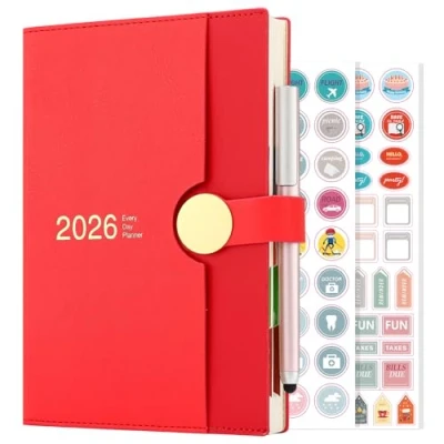 Academic Diary 2026 A5 Page a Day, from January to December 2026, 12 Months Daily Planner,Hardcover with Pen (Red)