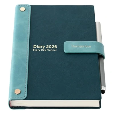 Diary 2026 - 2026 Diary A5 page per day, from January 2026 to December 2026, agenda 2026 day per page with pen (weekend can be on one page). With 12 months of monthly and weekly pages for easy planning. Reduce clutter and make progress every day. The 2026 A5 weekly planner is the perfect choice for organising your life. 2026 Diary weekly view-A5 size, multifunctional, you can make any plan, such as yearly goals, monthly and daily plans. Before the daily planner, you can make a rough plan for the whole year. Overview of all holidays included. To help you manage work and life effectively. Functional-|Year Plan jan-dec 2026 ||Monthly Plan |Day Plan|180° Lay flat Design | Pen |Inner Pocket|Pen Loop|3 Bookmarks | 2page Monthly Tab and 2 page Sticks |Premium BeigeThick Paper | Hardcover |2026 2027 calendar overview | Address Books|Note Pages| Premium Cover - The Cover of diary 2026 is made of high quality faux leather, simple and elegant design. Feels comfortable when touch, hard cover makes it very sutrdy. The Magnetic buckle band of diary keeps it securely closed, no need worry about peeled away from the cover. Mljtoyo Agenda 2026- A5 day by page 2026 from January 2026 to December 2026. The 12 month planner (352 pages) is 20% thicker than normal, ideal for use as a student planner, teacher planner or family planner. Appointment planner, school diary, work, family, college weekly planner, 2026 planner or personal organiser. Perfect for back to school, family, friends and mother's day gifts.