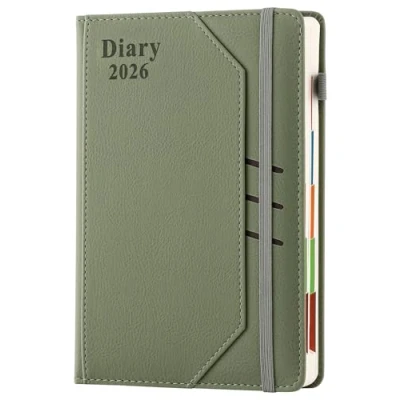 Academic Diary 2026 Page a Day With Time: Colorful Monthly Tabs / Elastic Closure / Faux Leather Hardcover / Front Pocket & Back Pocket / Pen Holder /2 Ribbon Bookmarks, 80 GSM Thicker Paper, ink resistant.The perfect gift for anyone who wants to deliberately take time for themselves in our hectic society. Gift more mindfulness and joy with this journal for women and men. A5 Diary 2026 Day Per Page: from January 2026 to December 2026. One day per page from 7: 00 a.m. to 8: 00 p.m(weekend on one page). Generous spaces for daily schedule or appointments goals plan.Each page has marked Colorful month for quick search. Achieve your goals with mid year diary 2026 page per day. Hardcover Diary 2026:The daily planner 2026 is easy to lays flat to look. Ideal for to use as a day to page Academic diary 2026, hourly appointments diary 2026 day per page, a5 student/teacher diary, work diary, family planner, Page a day diary college/university or Productivity Agenda. Useful Pages: Help you get a better grasp on arrangement. Includes Monthly Planner, 2025-2026 Yearly Planner, Jul 2025 to Jun 2026 Daily Planner,Personal DATA,Calendar Useful Pages: Help you get a better grasp on arrangement. Includes Monthly Planner, 2026 Yearly Planner, Jan 2026 to Dec 2026 Daily Planner,Personal DATA,Calendar 2026&2027,Life Blueprint,Health,Account,Payment List,Address List,Plans for studying,Travelling Plan,Health and fitness Plan,Financial Plan.The agenda will help you Stay Focused & Increase Productivity, and Achieve Your Goals.You'll get more done than ever before. Elegant Gift : Our Journal isn't just a personal essential; it's also a thoughtful gift. Each journal is an ideal choice for gifting occasions. Whether it's a birthday, anniversary, graduation, or any special event, presenting our journal is sure to leave a lasting impression.