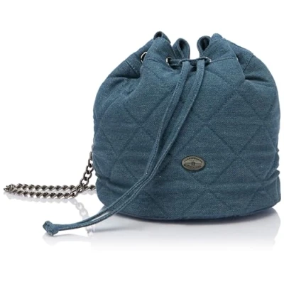 Casual pouch bag for women Decorative diamond quilting Drawstring Titanium-coloured link chain as carrying strap Titanium-coloured logo appliqué