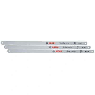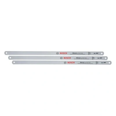 Features: Fine 300mm Bosch Universal Hacksaw Blades for precise cuts Fine saw blades with 24 TPI for precise cuts in metal, plastic and soft wood Sharp teeth with a hardness of 62-68 HRC for excellent cutting performance Made of robust bi-metal for a high level of durability Ideal for the Bosch Hacksaw 300mm and other Universal Hacksaws The Bosch Hacksaw Blades 300mm are extremely versatile for cutting metal, plastics, wood, composites and more. With 24 TPI, these high quality bi-metal blades provide precise cuts. They are compatible with the Bosch Hacksaw 300mm and other common 300mm Universal Hacksaws. Suitable for cutting metal, plastics, wood, composites and more, the Bosch Universal Hacksaw Blades 300mm are extremely versatile. The high quality 24 TPI blades provide precise cuts with a cutting length of 300 mm. For excellent cutting performance, the teeth have a hardness of 62-68 HRC. Made of strong bi-metal, the saw blades are designed to last and provide high durability. They