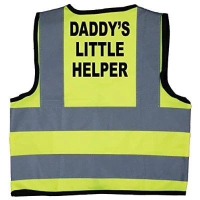 Acce Products Daddy's Little Helper Baby/Children/Kids Hi Vis Safety Jacket/Vest Size 1 2 Years Yellow Optional Personalised On Front
