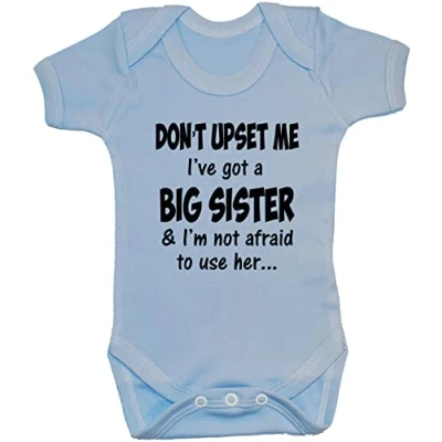 Acce Products Don't upset me I've got a big Sister & I'm not afraid to use her… Baby Bodysuit/T Shirt/Romper 3 6 Months Blue