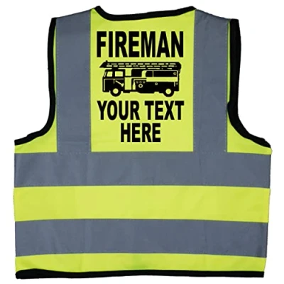 Acce Products Fireman Personalised WITH NAME Baby/Children/Kids Hi Vis Safety Jacket/Vest Size 2 3 Years Yellow Optional On Front