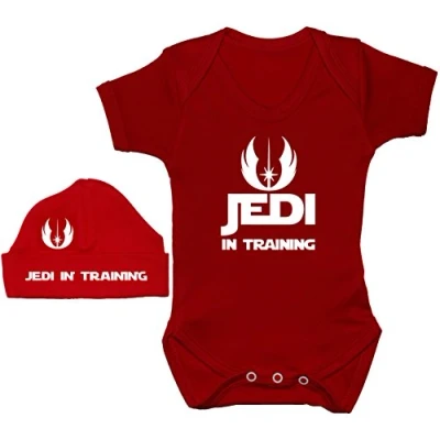 Acce Products Jedi in Training Baby Grow/Bodysuit/Romper/T Shirt & Beanie Hat/Cap 3 6 Months Red