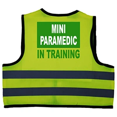 Acce Products MINI PARAMEDIC IN TRAINING Baby, Toddler, Children, Kids Hi Vis Safety Jacket Vest Size 7 9 Years Yellow Optional Personalised On Front