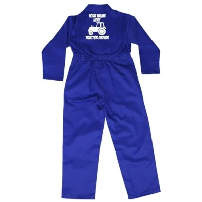 Acce Products Personalised Tractor Driver Baby, Toddler, Childrens, Kids, Coverall, Boilersuit, Overall Size 20, 1 2 Years Blue Optional Text to Front