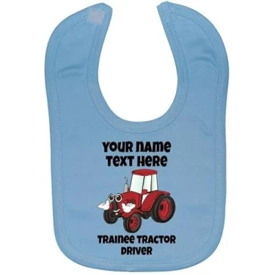 Acce Products Trainee Tractor Driver Personalised Name Red Pic Baby Infant Feeding Bib Touch Attach 0 to approx 3 Years Blue