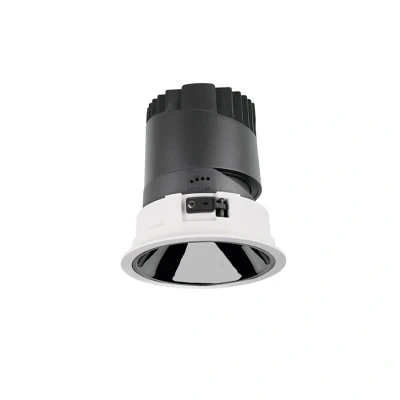12 degree beam angle, Low glare from deep recessed design, Focussed light direction (30° tiltable, 355° rotatable), Customised premium look with multiple reflector options, Plaster in mounting accessory available, Optional drivers for non-dim, DALI, 0-10V, push dim and Casambi app enabled (on request), Special orders welcomed,