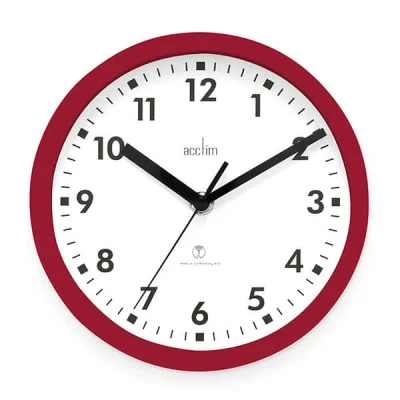 This radio controlled Acctim Nardo Red Wall Clock offers accurate timekeeping and a clear display, making it a practical addition to any living space.Enjoy peace of mind with a clock that automatically sets itself, so you never have to worry about adjusting the time. The simple design blends easily with a range of interiors, while the easy-to-read face helps you stay on schedule throughout the day.The clock features a durable plastic case and a glass lens for clarity and protection. Its radio controlled mechanism ensures precise timekeeping with minimal effort.