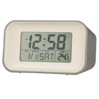 General description The Acctim Alta Alarm Clock in Owl Grey is a modern and sleek alarm clock featuring reflection luminous display technology, indoor temperature, and calendar functions. This minimalist design is available in a variety of colors to suit all interiors. Technical specifications Dimensions: 5.9 cm x 10 cm x 4.8 cm Crescendo alarm Snooze function Backlight