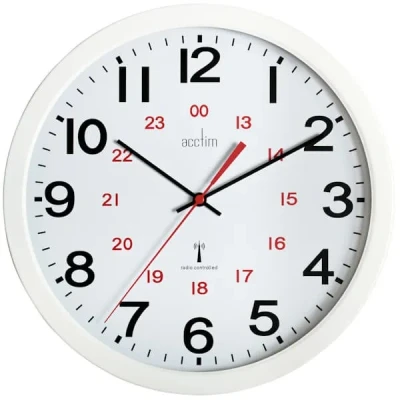 Harts of SturThe Acctim Controller White Clock is a radio controlled, painted metal case wall clock.Complete with glass lens and 12/24 hour dial.Energy efficient movement.Dimensions: L5.5cm x W30cm x H30cm.
