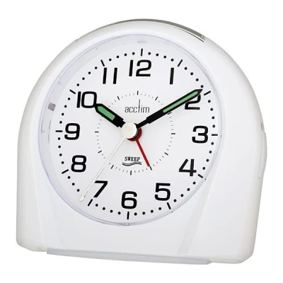 Harts of SturComplete with a non-ticking sweep seconds hand, alarm with snooze and luminous tipped hands with energy efficient movement, the Acctim Europa Alarm Clock in White is great a alarm clock option for the bedroom. Available in a selection of different colours to suit most tastes. Dimensions: 11cm x 10.5cm x 6cm.1 year guarantee