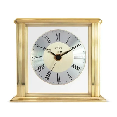Acctim Hamilton Mantel Clock Quartz Brushed Metal & Glass Floating Effect Energy Efficient Brass
