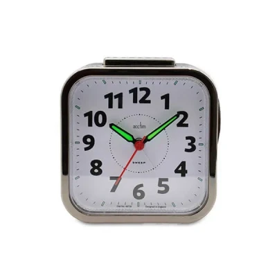 This sophisticated Acctim Otis Black Gunmetal Analogue Alarm Clock offers quiet operation and a classic bell alarm, making it ideal for restful mornings and reliable wake-ups.Enjoy peaceful mornings with a clock designed for light sleepers, featuring a sweep movement that eliminates disruptive ticking. The timeless look suits any bedside table or desk, while the luminous hands and markers make it easy to check the time, even in low light. Its compact size brings both style and practicality to your space.The reliable quartz movement ensures precise timekeeping, and the non-ticking mechanism creates a serene environment. Includes a snooze alarm and backlight for added convenience.